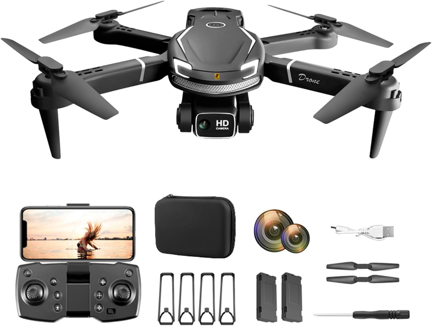 - Complete Kit: Includes drone, controller, propeller guards, battery (3.7V 1800mAh Li), charging cable, spare blades & more.