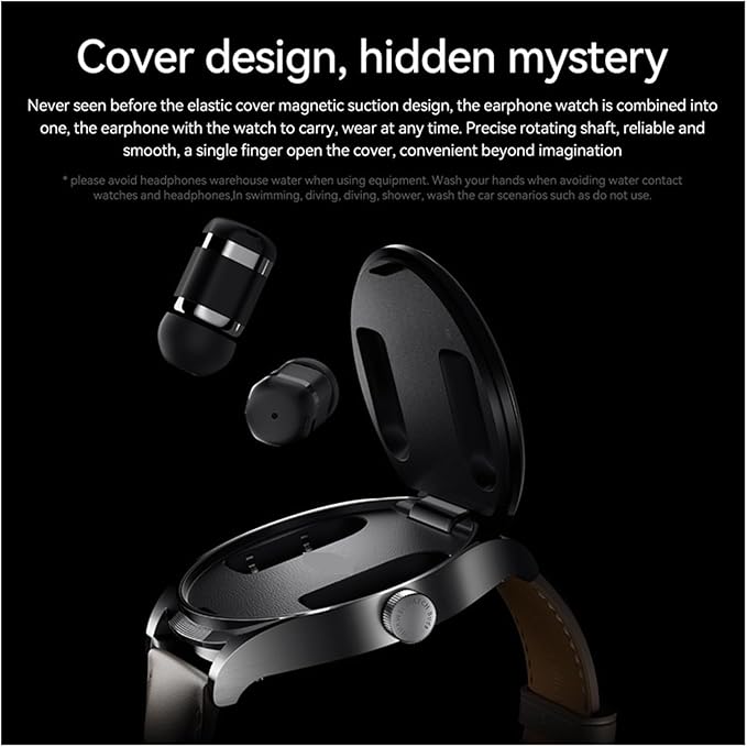 - 【Earbuds and Watch Come into One】The innovative pop-up cover and attachable magnetic design fuse the earbuds and watch, for extra convenience.